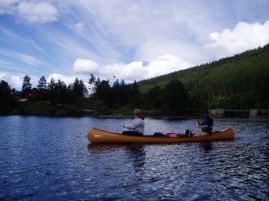 Da var det duket for årets høydepunkt hva angår villmarksopplevelser, en ukes kanotur på Femunden og Feragen. Vidar, Keith, Even og Jack hadde avtalt å møte på Røros. Vidar kom fra Kristiansund, Keith med fly fra Stavanger, Jack og jeg fra hytta på Dovre. Flyet til Keith var en del forsinket, så Vidar og jeg tok en runde for å rekognosere litt, bl. annet for å sjekke inn på hytta vi hadde leid på Røros Camping. Værmeldingen for den første dagen var ikke oppløftende, øsende pøsende regnvær. Samtidig kunne vi bli litt bedre kjent, pakke om og planlegge litt turen. Etter en handlerunde på Røros Coop Mega, ble det litt øl, Jeger, skitprat og planlegging.