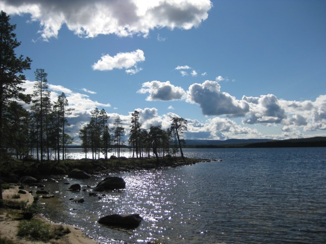 Egg og bacon til frokost i dag. Oppdaget til min store forskrekkelse at jeg hadde glemt å pakke en flaske med flytende smør. Det kan by på noen utfordringer å få lage mat uten smør!! Vi bestemte oss for å bli her en dag til, så da var det bare å sage og hugge nok ved for dagen og kvelden. Middag i dag ble stekt laks. Steikepannen min var så mettet med fett at det faktisk gikk bra uten flytende smør. Vi benyttet også anledningen til å orientere oss litt i området rundt, både nordover og sørover på T-merkede stier. Det ble noen lette regnbyer ut på ettermiddagen, men ut på kvelden klarnet det opp og ble stjerneklart. Når vi køyet hadde fullmånen kommet opp på himmelen og det var så pass kaldt at det var rim på teltduken.